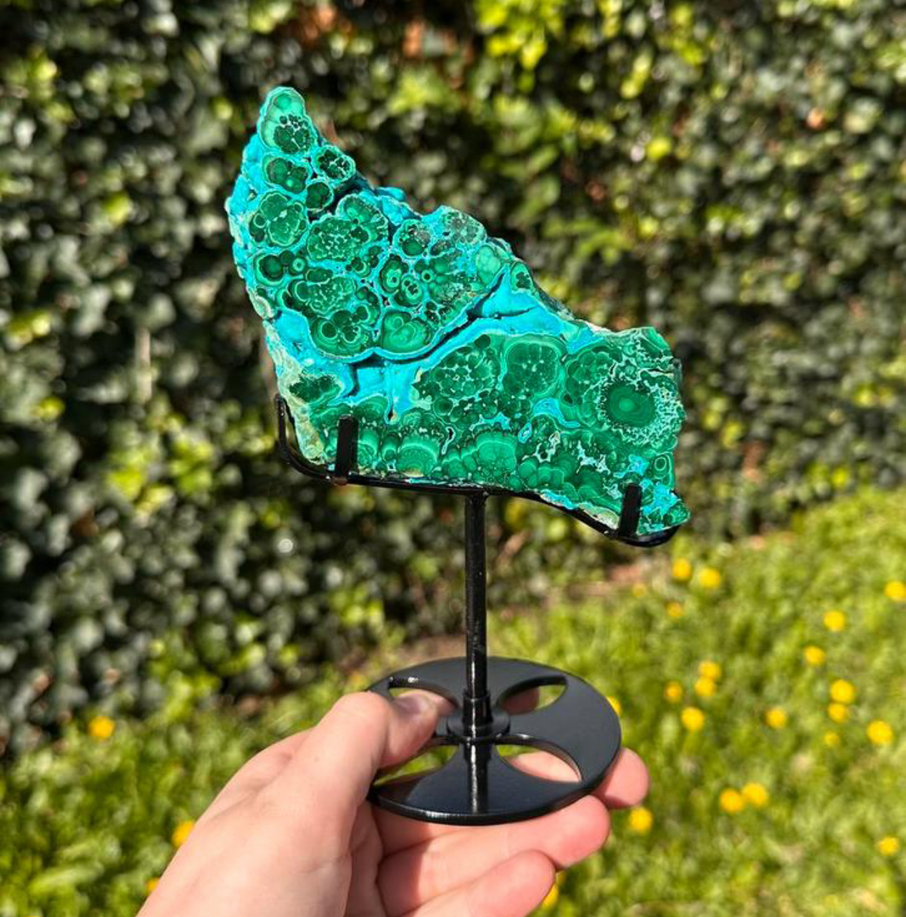 Chrysocolla staat bekend als een steen van rust en balans. Deze prachtige slab op standaard (415 gram) brengt een kalmerende energie in elke ruimte en ondersteunt bij het loslaten van stress en spanningen. Chrysocolla wordt vaak gebruikt om communicatie en zelfexpressie te bevorderen en om innerlijke wijsheid en harmonie te versterken. Ideaal voor gebruik in meditatie, therapie of als decoratief en energetisch sieraad in huis.