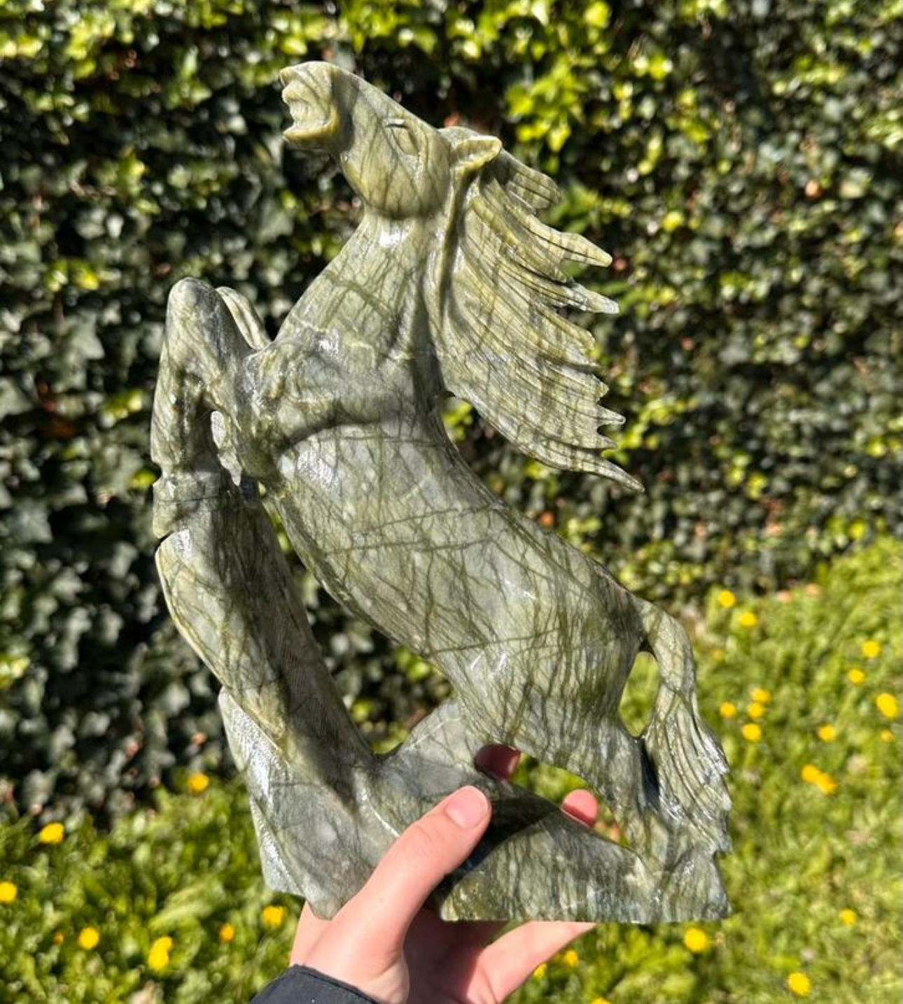 Dit prachtige Xiuyan Jade paard is een uniek hand geslepen statement piece met een krachtig en elegant uiterlijk. De zachte groene tinten en natuurlijke glans van de jade geven het beeld een serene en luxe uitstraling. Met een gewicht van bijna 4 kilogram is het een indrukwekkend decoratief stuk dat kracht, doorzettingsvermogen en harmonie symboliseert. Perfect voor in huis, op kantoor of als bijzonder cadeau voor een paardenliefhebber of verzamelaar.